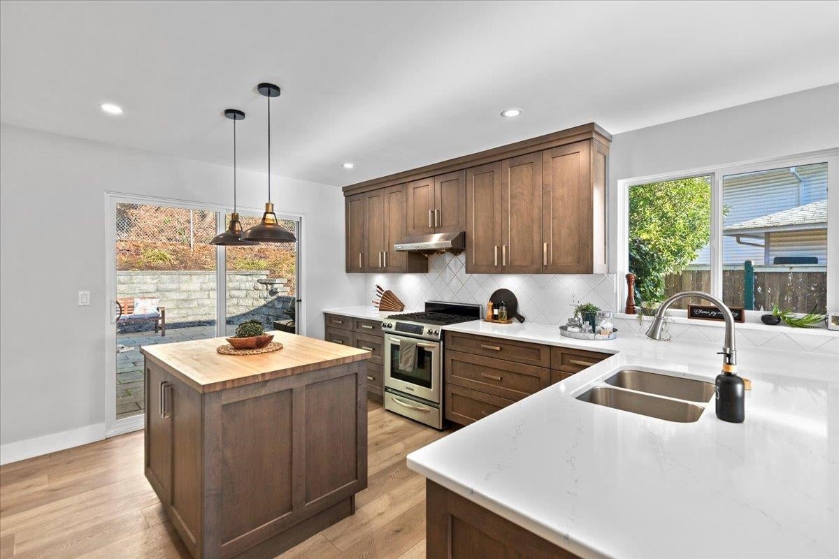 Looking for a quiet, affordable place to call home in Maple Ridge, here it is! Tucked away on a cul-de-sac, backing onto greenbelt, steps away from the West Coast Express and the river side trail network. Thoughtfully updated with quality upgrades; new kitchen, open concept main living space, A/C, hardscaped patio area backing onto green belt with access directly off the kitchen. This home is well designed for entertaining as well as family living. Your own central oasis with quick access to Greater Vancouver via the West Coast Express, as well as Golden Ears Bridge. 5 minutes from Ridge Meadows Hospital and downtown Maple Ridge. Enjoy your weekends on the nearby trails, parks and Alouette lake nearby. A place and space to call your own, no strata! Bonus * In the MR OCP-Town Center Plan $*